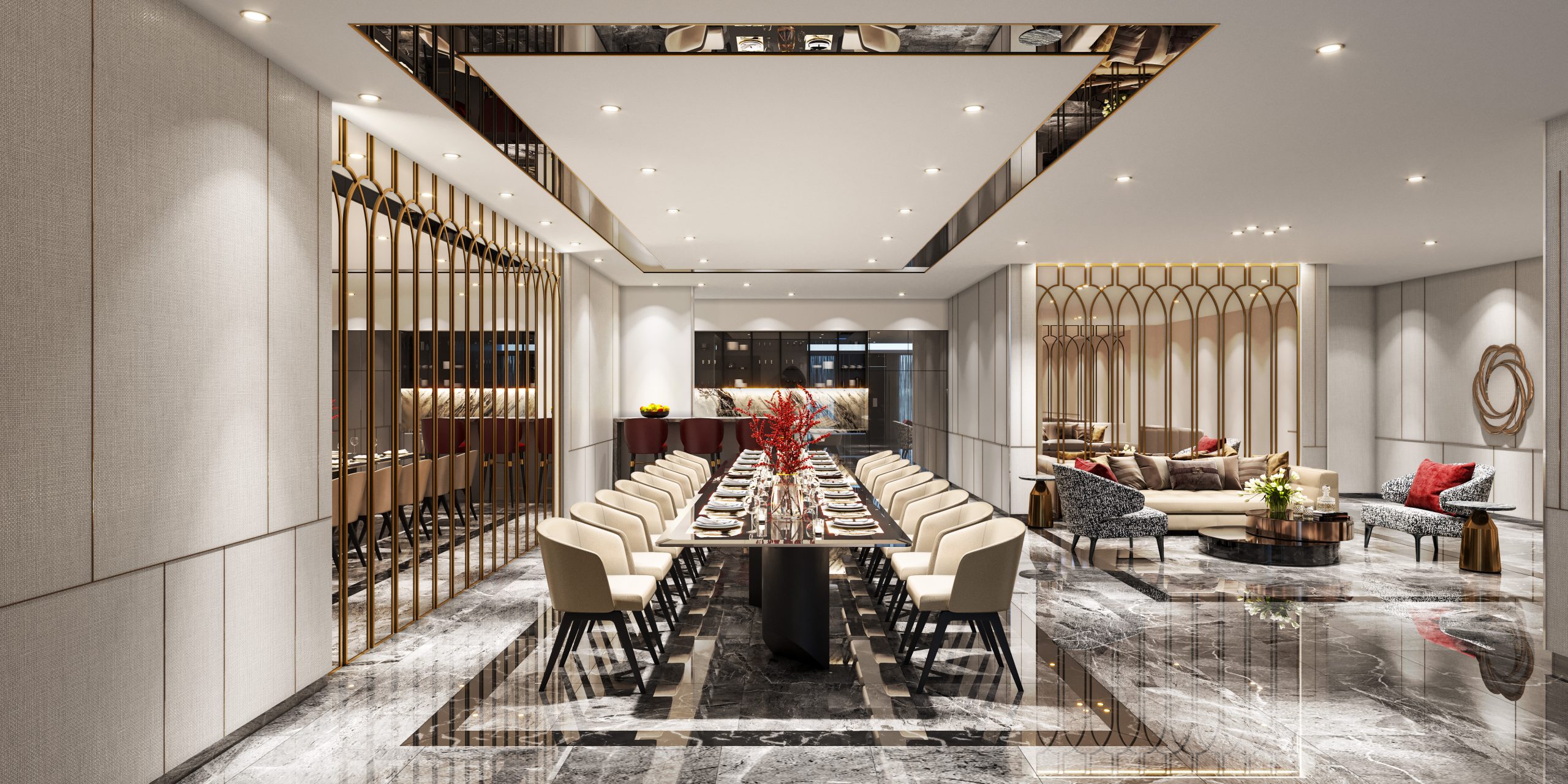 - Phòng Fine Dining Lounge sang trọng – nơi tổ chức những buổi tiệc tối riêng tư, đẳng cấp.